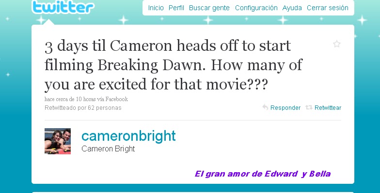 3 dias para que Cameron vaya a empezar a grabar Amanecer, cuantos de ustedes estan emocionados por esa pelicula?