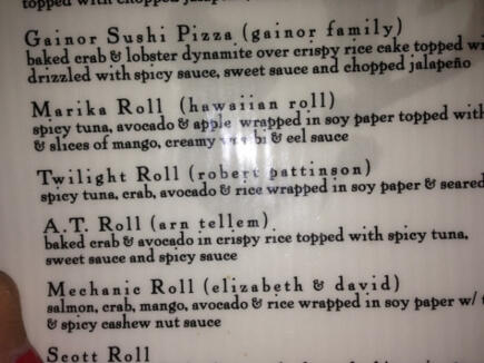 HOLY FUCK. LA CAMARERA ACABA DE DECIRME QUE LLAMARON ASÍ AL ROLL COMO ÉL PORQUE ÉL VINO CON KRISTEN