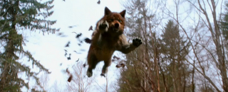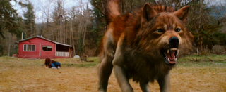 Jacob y el taller Vemos una pata y una cabeza de un lobo que salen. Estoy muy contenta de que recordaran que su ropa se convierte en solo destrozos de tela! Esto es simplemente demasiado bueno ... Esto es demasiado brillante! quisiera, sin embargo, podríamos decir el tamaño del lobo en comparación con Bella, pero el lobo esta en posición de agacharse y Bella esta demasiado lejos.
