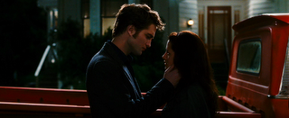 Edward sigue sin mirar a los ojos a Bella. Incluso cuando le esta dando el beso de despedida (U)