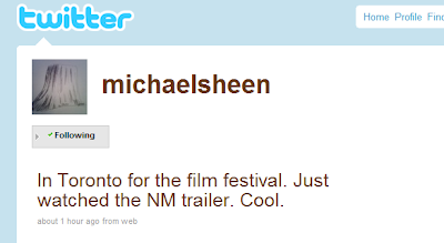 "En Toronto para el Film Festival. Acabo de ver el trailer de New Moon. Cool"