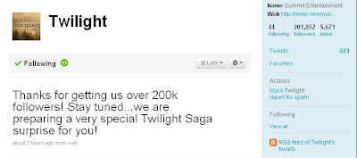"Gracias por conseguirnos más de 200mil seguidores! Mantengase atentos... estamos preparando una sorpresa muy especial de la Saga Twilight!