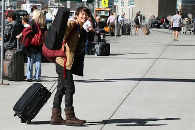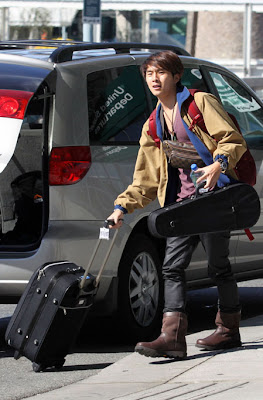 Justin parece tener un maravilloso dia mientras deja Vancouver!!