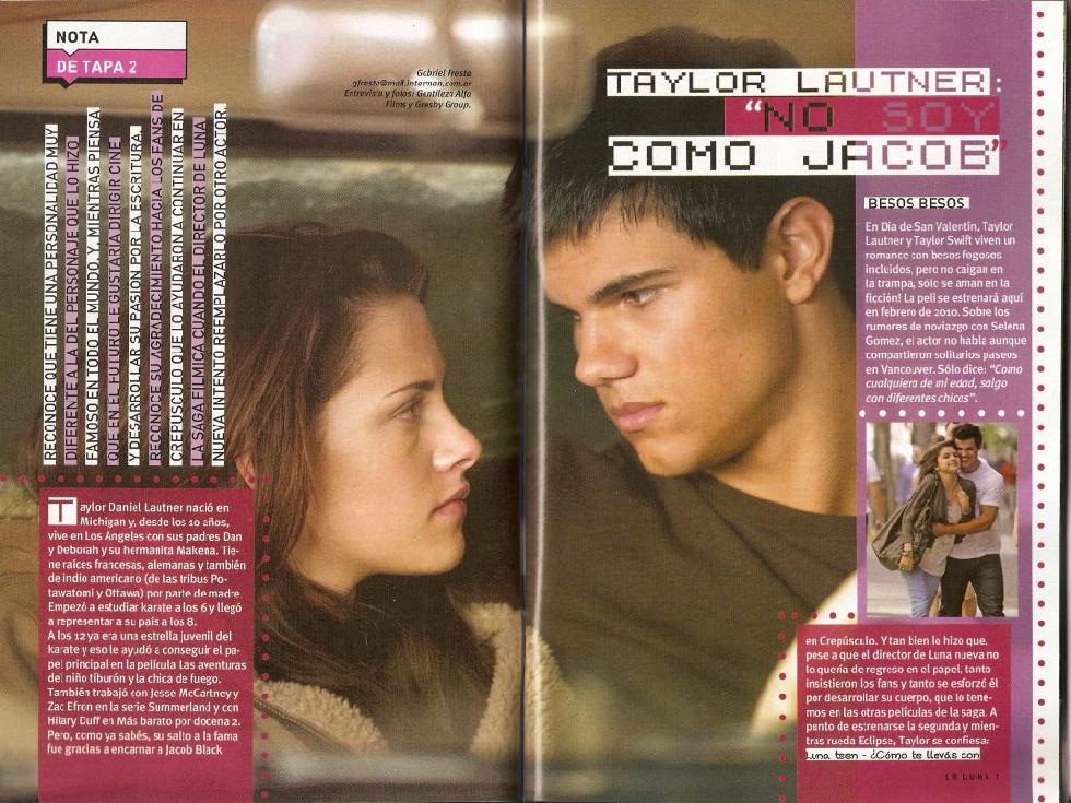 Todo indica que Taylor sera la estrella de Luna Nueva, cada vez son mas las chicas que descubren que este bombon es su estrella favorita y se encariñan con Jacob Black. Su personaje de hombre lobo de sangre nativo-americana, se roba una parte importante de la historia, sin opacar a Rob Pattinson.