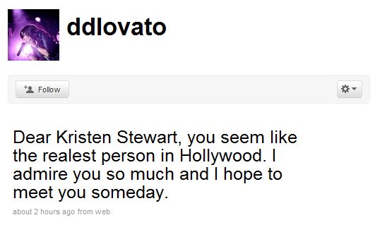 "Querida Kristen Stewart, pareces como la persona más sincera en Hollywood. Te admiro demasiado espero conocerte algún día."