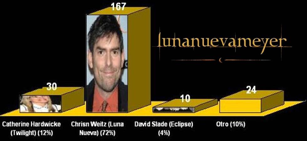 Segun lo que he visto si hemos de darle el premio a alguien que ya haya dirigido es a Chris Weitz por la paleta de colores que uso y los efectos que realmente se ven buenos ah y olvidaba el maquillaje. Pero aun no hemos visto nada de Slade, las imagenes que ha subido a su twitter son magnificas y a mi me encantan pero su trabajo siempre ha ido tras cosas violentas y Breaking Dawn solo tendra de violencia la pelea entre los cullens con lobos incluidos y los volturi que sera visualizada primero por Melisa Rosemberg. Lo que determina un punto mas a favor de Chris porque en resumen breaking dawn es acerca de las relaciones en los personajes, la pelea la podria manejar perfectamente el.