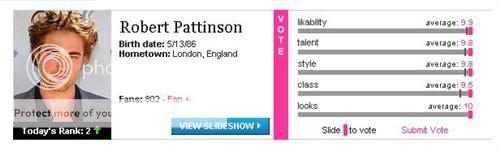Popsugar Situa en el Top 100 de celebridades a Kristen (#1) y a Rob (#2), seguidos de estrellas como Angelina Jolie, Katie Holmes, Lauren Conrad entre otras.