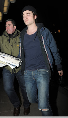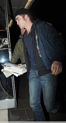 mmmm si pincha en una de las fotos en la primera o ultima podran ver que entre medio de los diarios que lleva rob hay un libro...mmm de que sera...quiza nnada importante...pero si intrigante!!!!