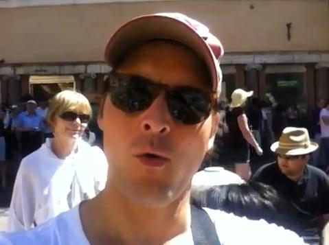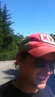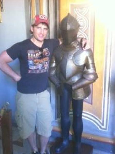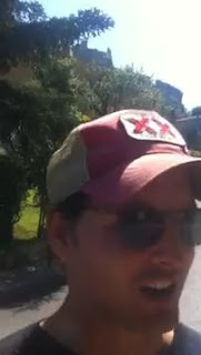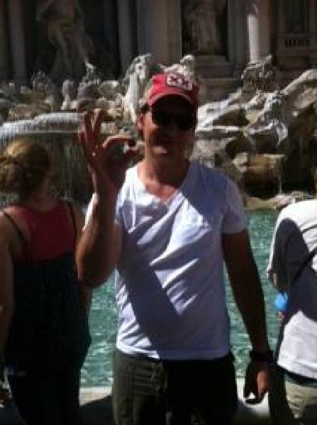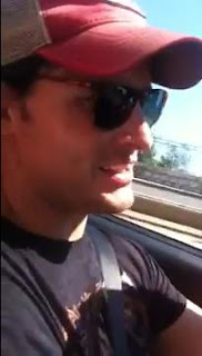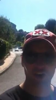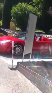 Peter en Francia conduciendo un Ferrari Rojo.