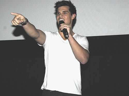 El Sr. Lautner se situó al frente del auditorio como cámaras de teléfono celular capturaron el momento por toda la eternidad ... o Facebook. Los fans gritaron, dieron alaridos y declararon su amor por el actor de 18 años de edad, quien interpreta a Jacob Black hombre lobo en la franquicia de vampiros muy popular.