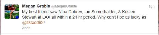 Mi mejor amigo vio a Nina Dobrev,Lan Somerhalder & Kristen Stewart en LAX, todos dentro de un periodo de 24 hs. Por que no puedo tener tanta suerte como @litodd92!